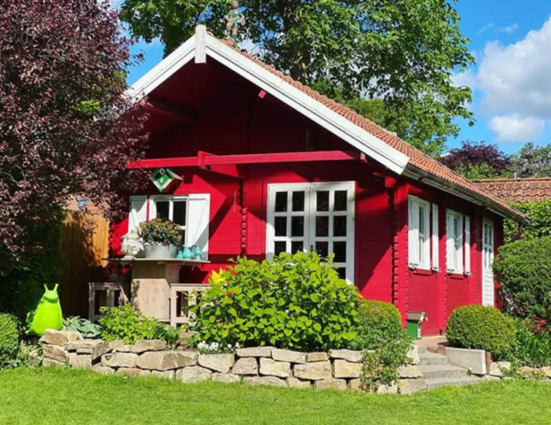 Ein Gartenhaus streichen im klassischen Rot-Weiß-Look